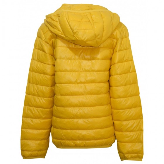 Детско яке в жълто, унисекс. Качулката на модела се сваля.