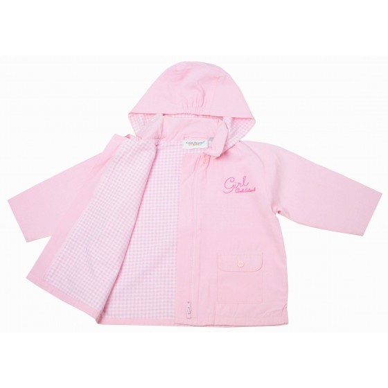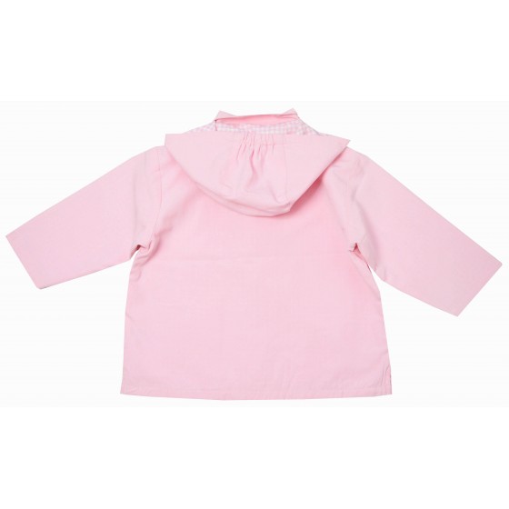 Бебешко пролетно яке за момиче в розово с качулка и каре подплата.