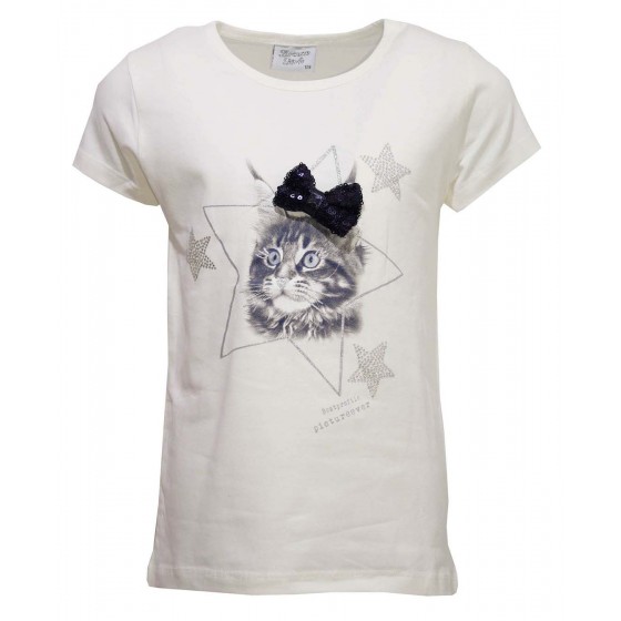 Детска тениска за момиче в екрю с красива апликация.