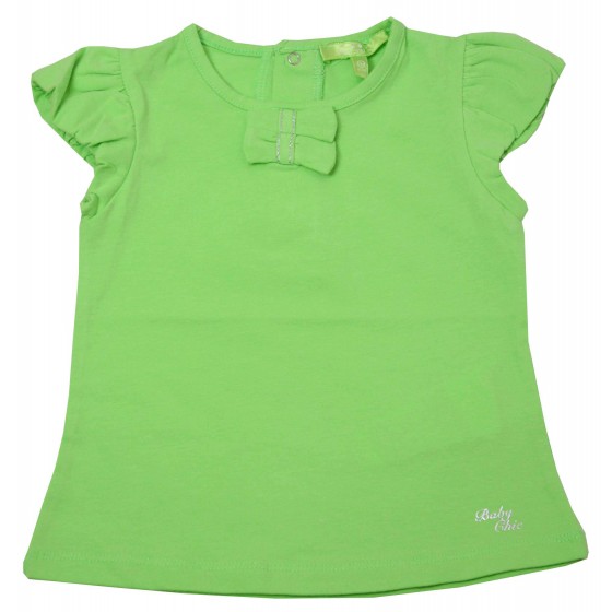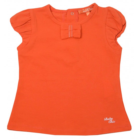 Комплект от два броя бебешки тениски за момиче в оранжево и зелено.