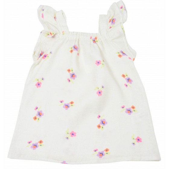 Детски комплект за момиче от две части с туника и клин. Туниката е в бяло с бродерия цветя в горната част и дантела в долната...