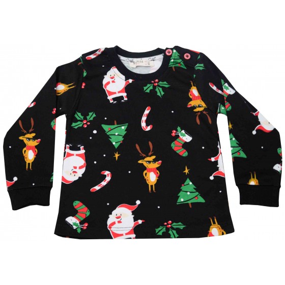 Детска пижама за момиче в черно с коледен принт.