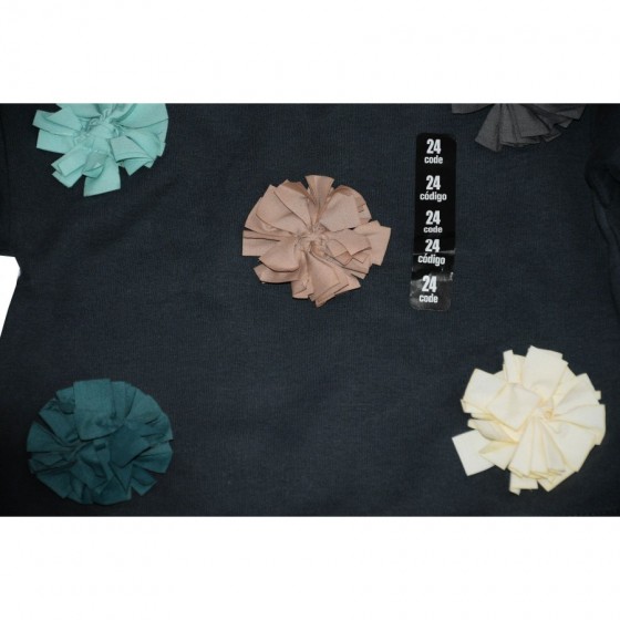 Бебешка блуза за момиче в тъмнозелено с пришити цветя. Модела е от плътна материя.