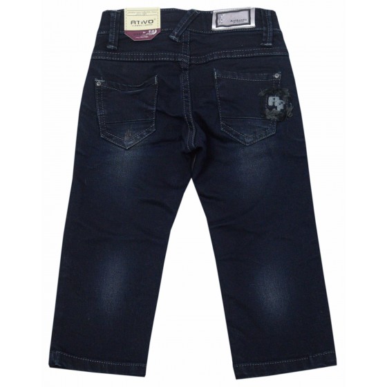 Бебешки дънки за момче в тъмносиньо с леко избелял и накъсан ефект.