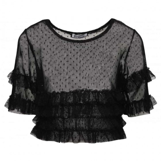 Детска блуза боди в черно с дантела.
