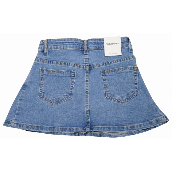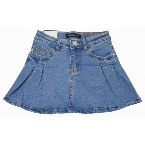 Детска дънкова пола в светлосиньо, разкроена с плисета и джобове.