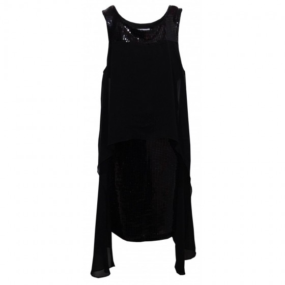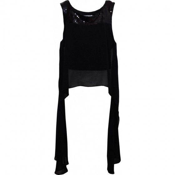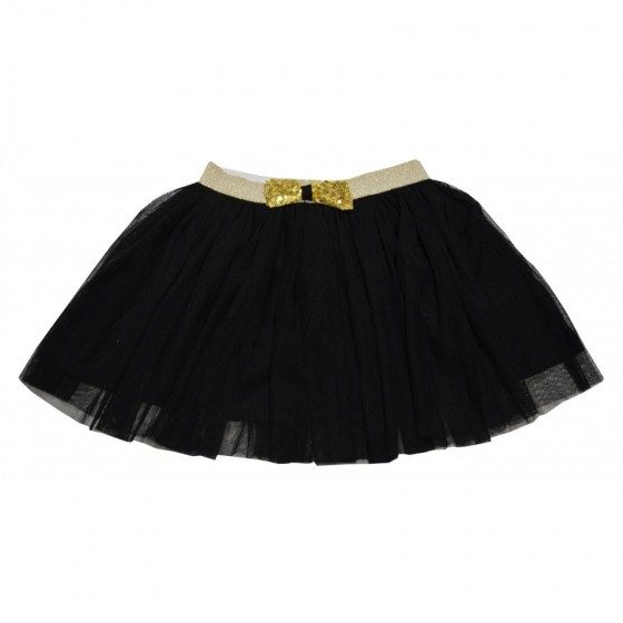 Детски комплект за момиче от две части. Блуза със златисти пайети, горната част е от прозрачен тюл. Полата е от черен тюл с...
