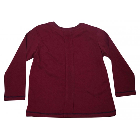 Детска блуза за момче в червено с надписи и копчета.