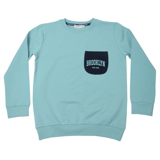 Детски комплект за момче от две части с блуза в син цвят и черно долнище. Модела е с красива апликация.