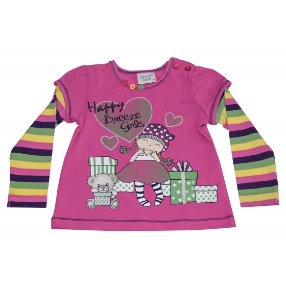 Бебешки комплект за момиче от две части с блуза и долнище. Блузата е с дълъг ръкав, обло бие и красива апликация надпис....