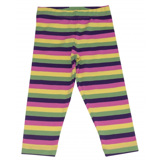 Детски комплект за момиче от две части. Туниката е в цветно райе с цветя. Клина е изчистен в кафяво.