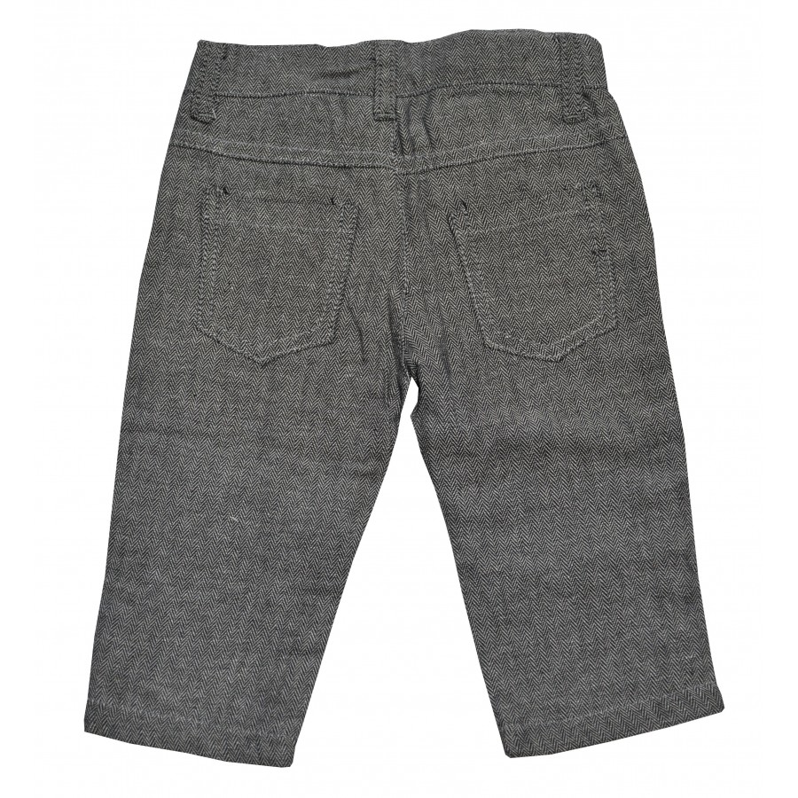 Бебешки комплект за момче от три части. Пуловера е в тъмносиньо с апликация коли. Блузата е в екрю с копчета и яка. Панталона е с лека подплата и има ластик на талията за корекция.