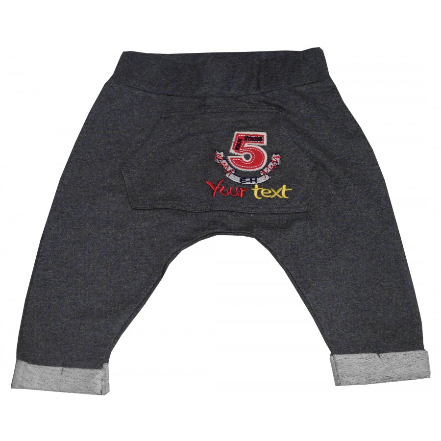 Бебешко долнище тип потур за момче в сиво с апликация бродерия.