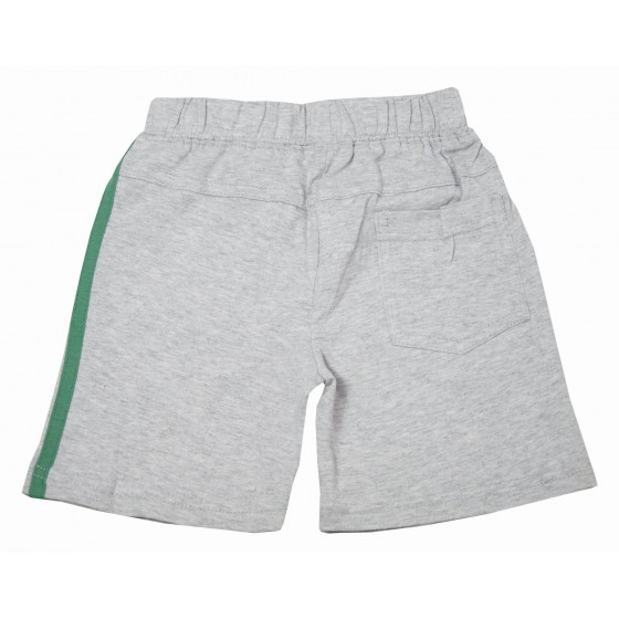 Красив бебешки комплект за момче от две части с тениска и къси панталони. Модела е изработен от висококачествена материя. Тениската е в зелен цвят с класическа кройка и красива апликация. Късите панталони са в сиво с ластична талия и цветен надпис с кант на левия крачол. Комплекта осигурява удобство и свобода на движението през целия ден. Подходящ е за ежедневни игри и разходки. Лесен за поддръжка, комплектът може да се пере в пералня без риск от загуба на форма или цвят.