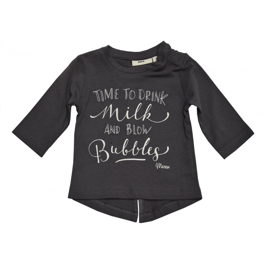 Бебешка туника за момиче в сиво. Моделът е леко удължен на гърба.
