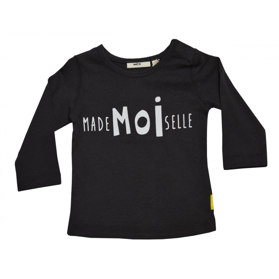 Бебешка блуза за момиче в тъмносиво с бял надпис.