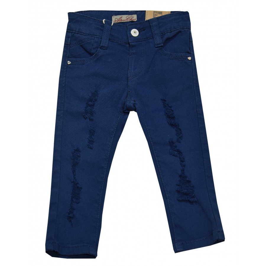 Бебешки цветни дънки в тъмносиньо с накъсан ефект Ativo.