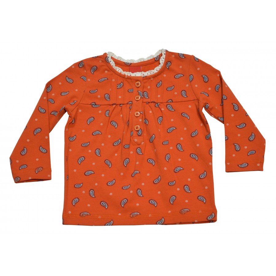 Бебешка туника в оранжево с копчета и дантела около врата.