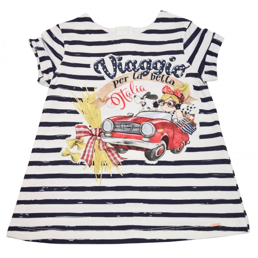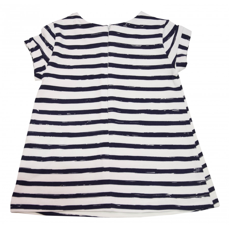 Бебешка рокля за момиче в райе тъмносиньо и бяло с красива апликация Mayoral.