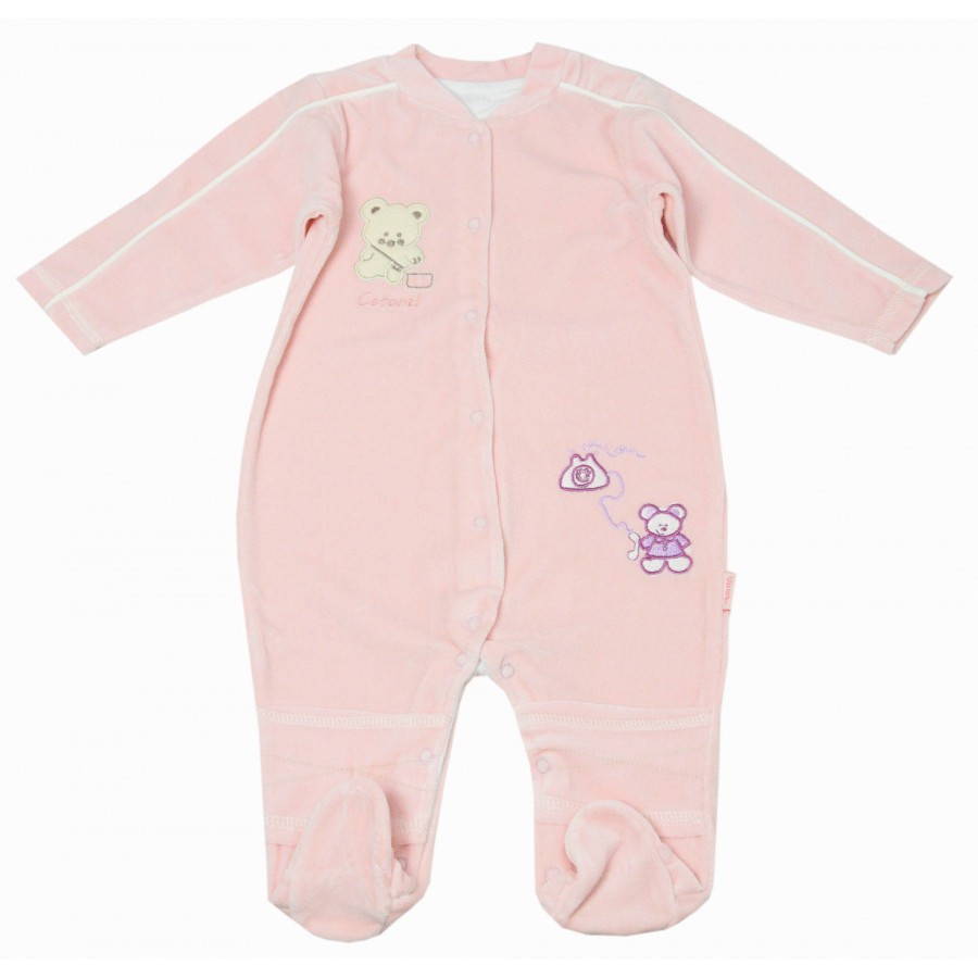 Бебешко плюшено боди за момиче с бродерия мечета. Модела е с копчета по цялата дължина.