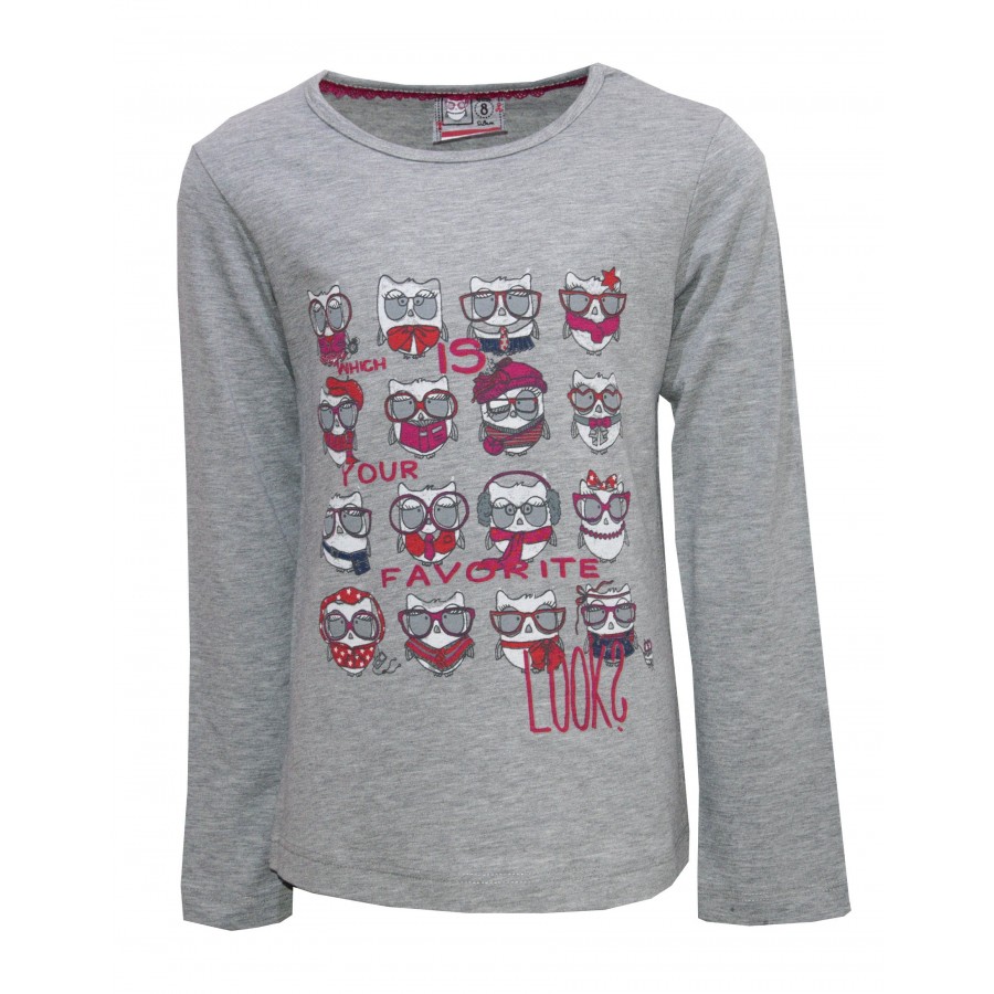 Детска блуза за момиче в сиво с апликация бухалчета.
