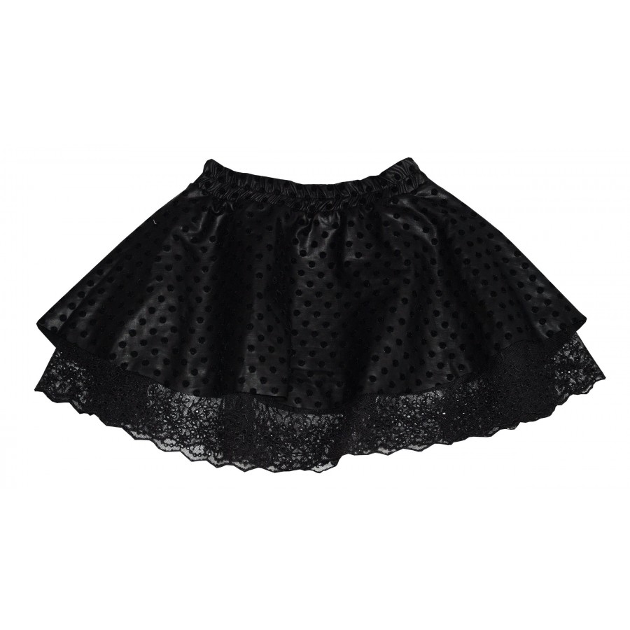 Детска кожена пола в черно с дантела.