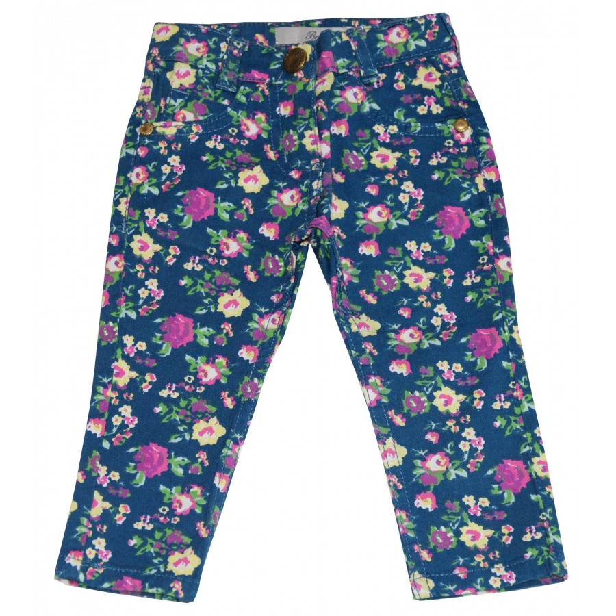 Бебешки пролетен панталон за момиче в синьо на цветя.