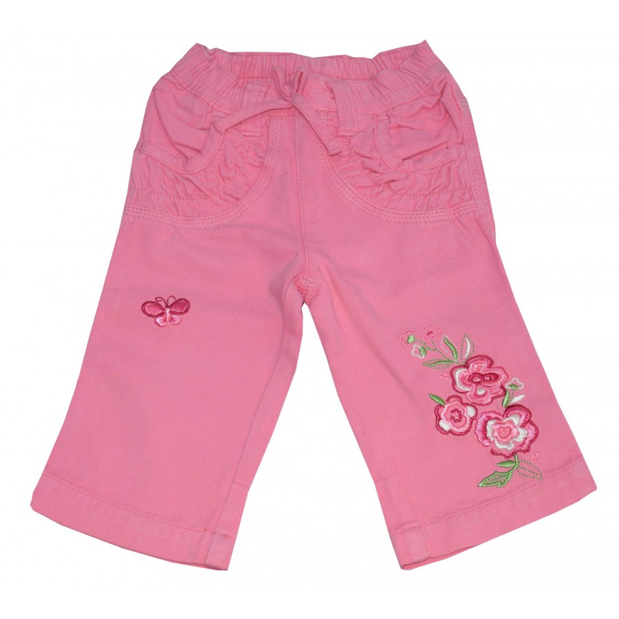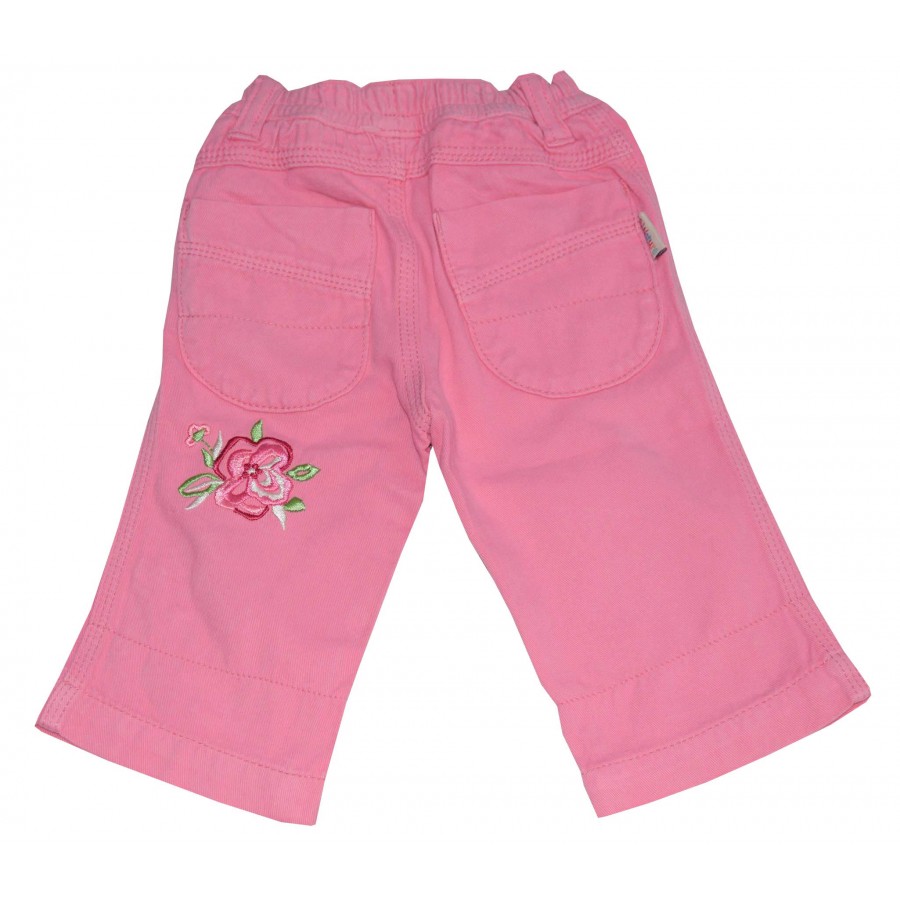 Бебешки панталон за момиче в розово с апликация цветя. Модела е с ластик на талията.