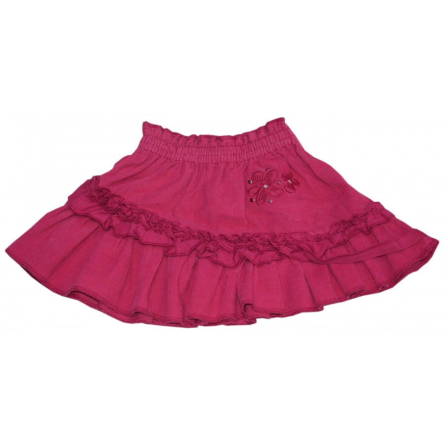 Бебешка джинсова пола за момиче в цикламено с апликация цветя.