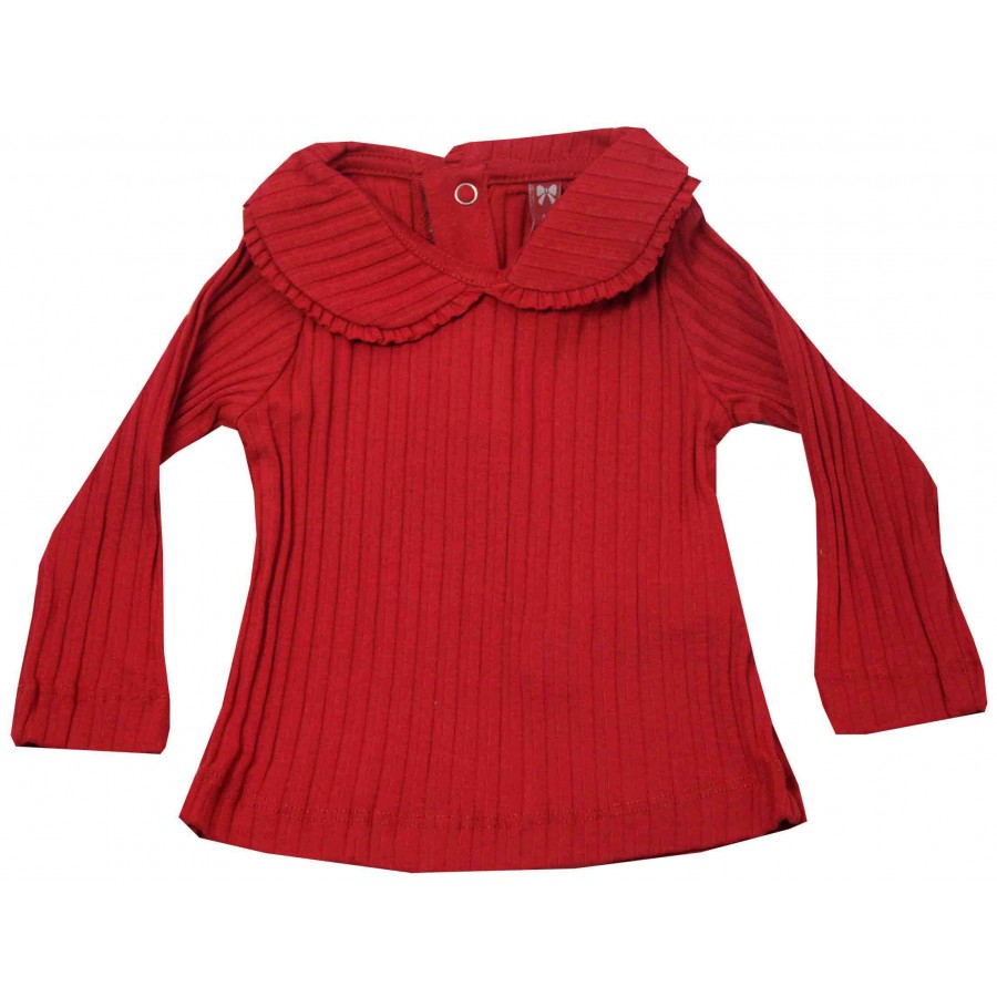 Бебешка блуза за момиче в красив червен цвят, изработена от рипсена материя и допълнена с яка.