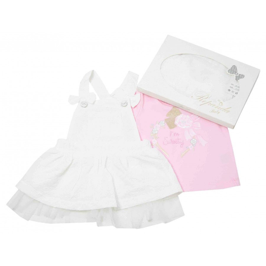 Бебешки комплект от две части за момиче: сукман и тениска.