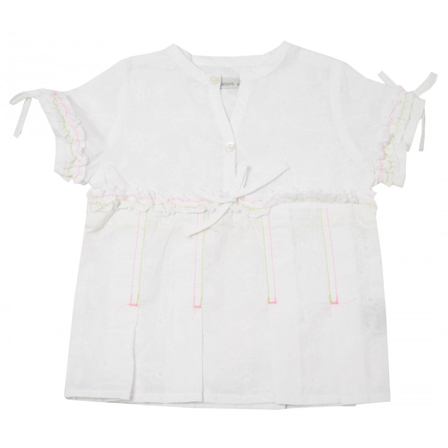 Бебешка риза за момиче в бяло с плисета в долната част.