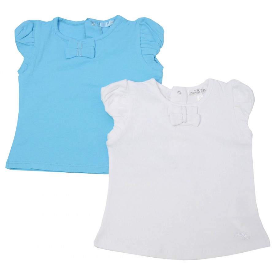 Комплект от два броя бебешки тениски за момиче в синьо и бяло.