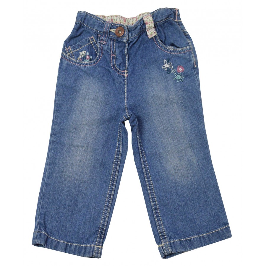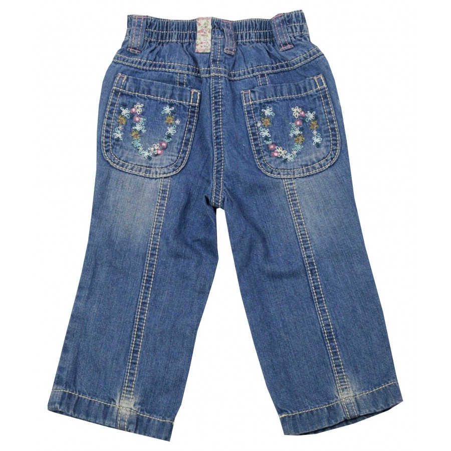 Бебешки дънки за момиче с апликация цветя в предната част и на гърба.