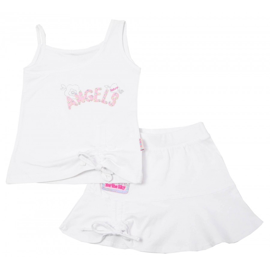 Бебешки комплект за момиче в бяло с потник и пола.
