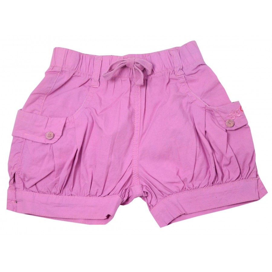 Детски къси панталони за момиче в лилаво със странични джобове и цветна апликация.