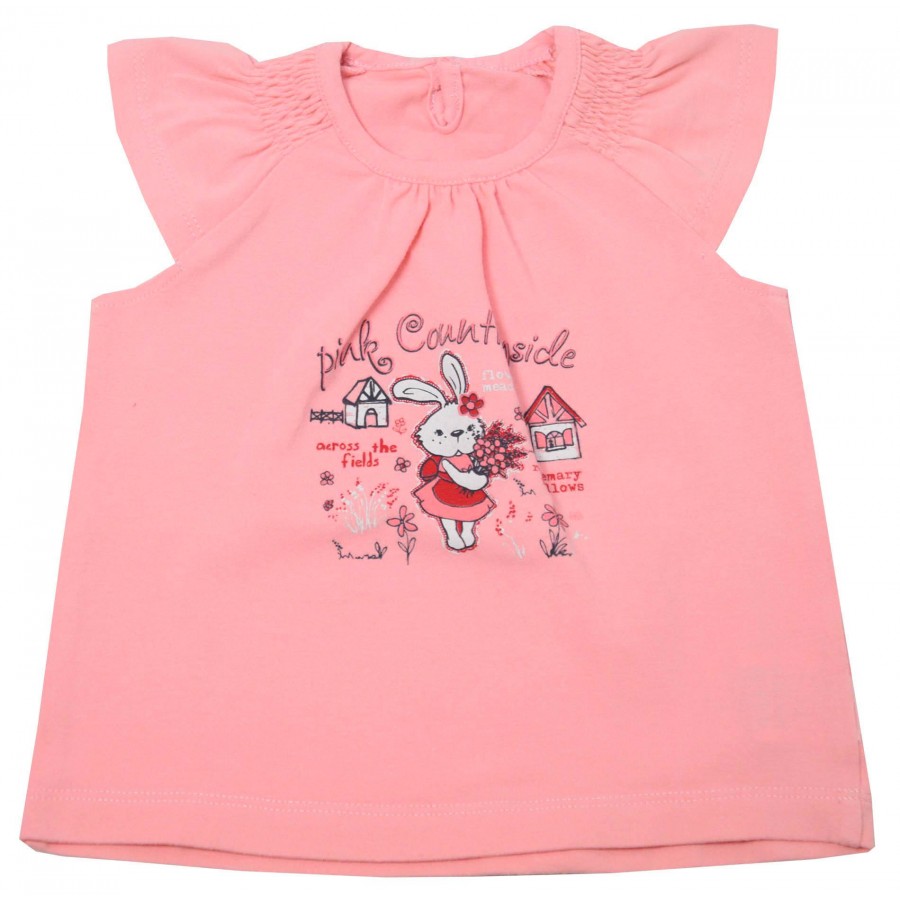 Бебешка тениска за момиче с красива апликация и ластик на раменете.