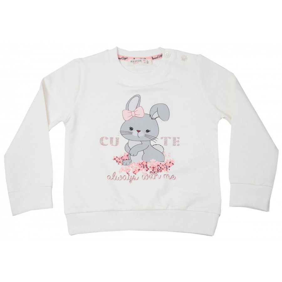 Практичен детски комплект за момиче, включващ блуза и долнище, изработен от висококачествена и мека материя. Блузата е в екрю с красива апликация на зайче. Размерите 80, 86, 92 имат копчета на рамото, за лесно обличане и събличане. Долнището е в цвят пудра с надпис, ластична талия и маншети на крачолите. Този комплект осигурява удобство и свобода на движението през целия ден. Подходящ е за ежедневни игри и разходки. Лесен за поддръжка, комплектът може да се пере в пералня без риск от загуба на форма или цвят. С този бебешки комплект Вашето момиче ще изглежда сладко и стилно, докато се чувства удобно през целия ден.