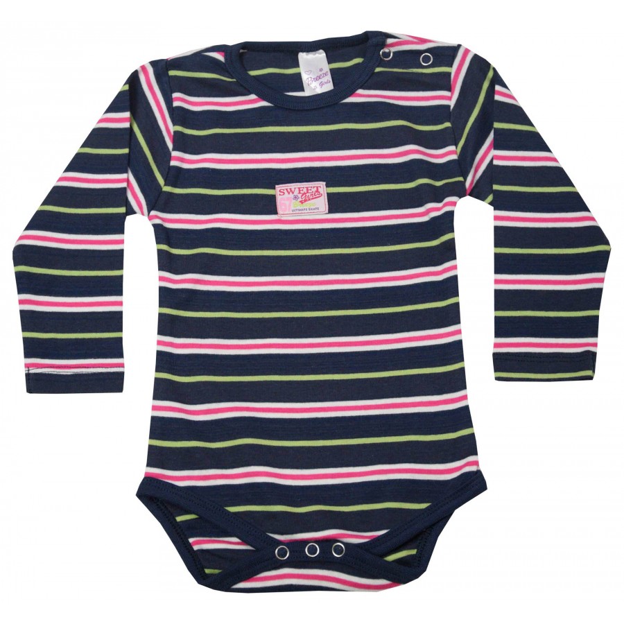Бебешко боди бельо с дълъг ръкав е изработено от висококачествена памучна материя. Моделът има обло бие и тик-так копчета на рамото и в долната част, за лесно обличане и събличане. Подходящо е за носене, както под дрехи като бельо, така и самостоятелно като блуза, съчетано с панталон, дънки или клин. Бебешко боди за момиче Breeze е прекрасен избор за Вашето малко момиче.