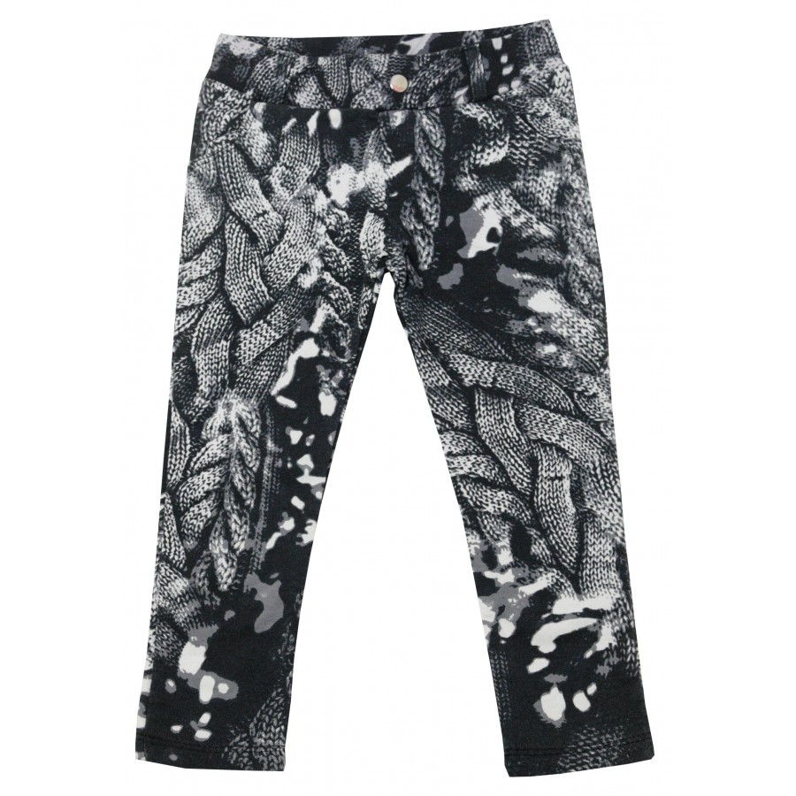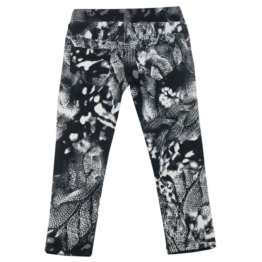 Бебешки клин-панталон за момиче в черно с принт в бяло и сиво.