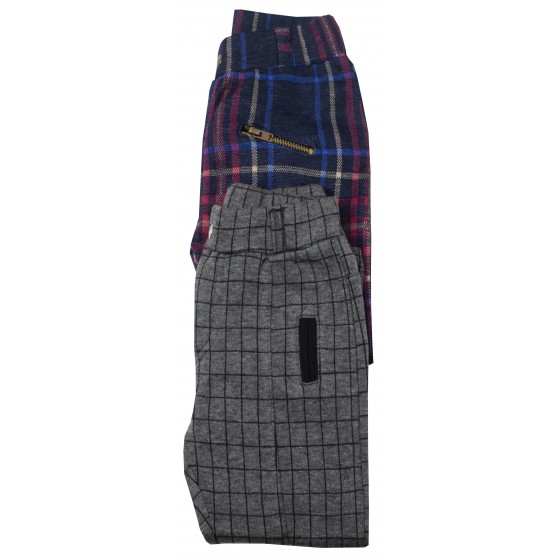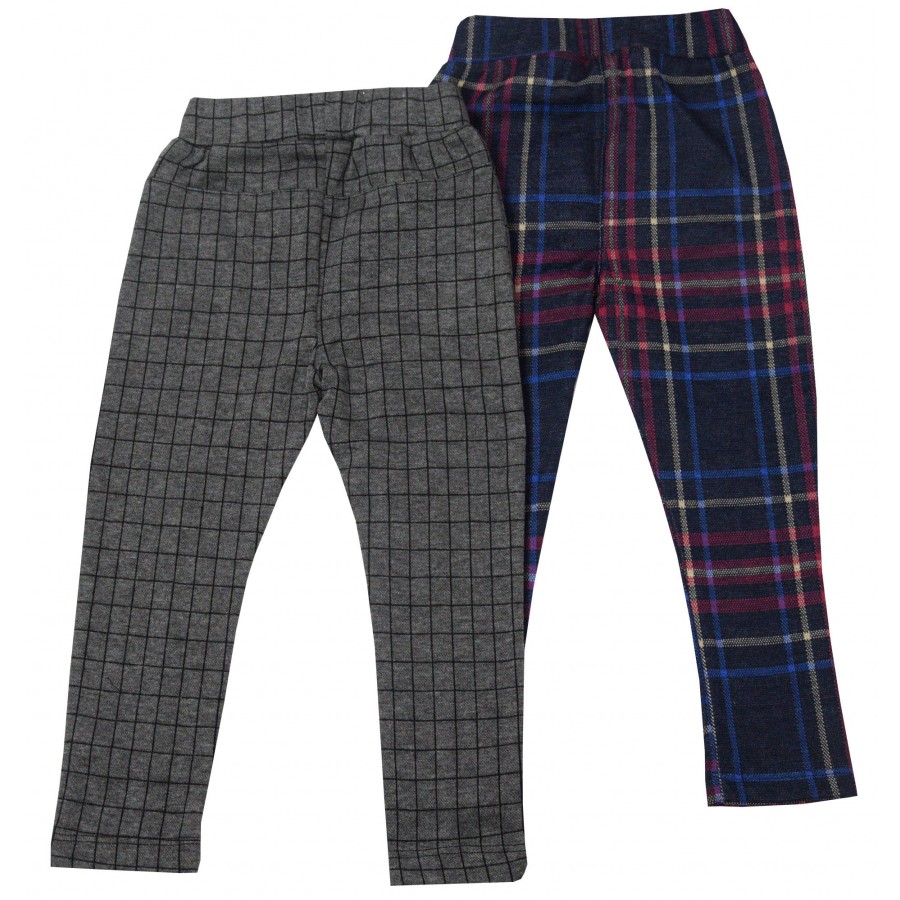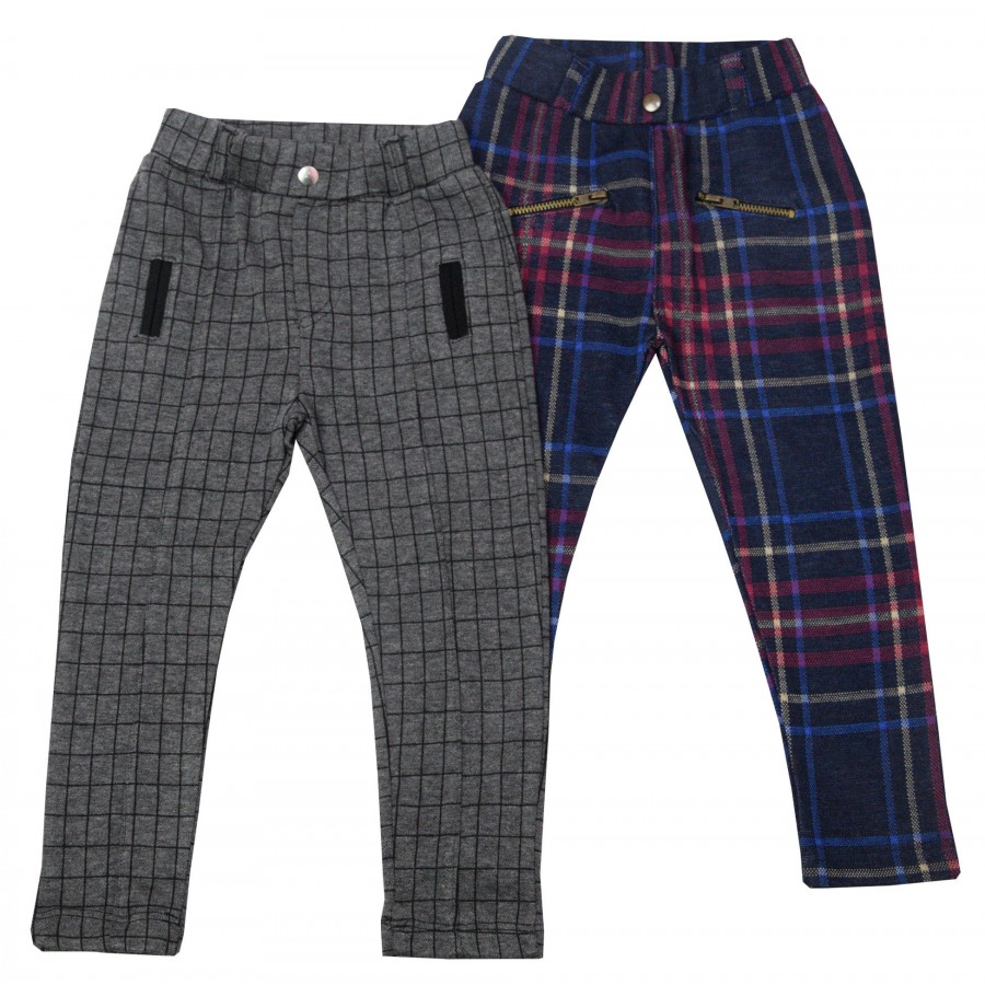 Практичен комплект от два броя детски клинове за момиче в сиво и цветно каре, изработени от висококачествени материи. Моделите са с декоратично копче и ластична талия. Подходящи са да се комбинират с блузи и туники. Практични и удобни за ежедневни игри и разходки.