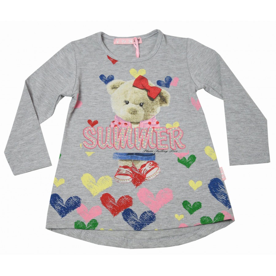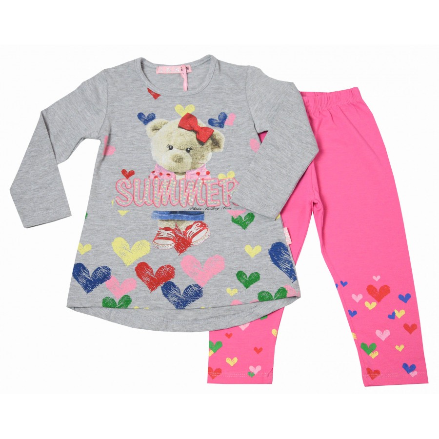 Красив бебешки комплект за момиче, включващ туника и клин. Модела е изработен от висококачествена материя. Туниката е в сив цвят с красива апликация на мече, класическа кройка и дълги ръкави. Клина е с ластична талия и апликация на сърчица в долната част. Този комплект осигурява удобство и свобода на движението през целия ден. Подходящ е за ежедневни игри и разходки. Лесен за поддръжка, комплектът може да се пере в пералня без риск от загуба на форма или цвят. С този бебешки комплект Вашето момиче ще изглежда сладко и стилно, докато се чувства удобно през целия ден.