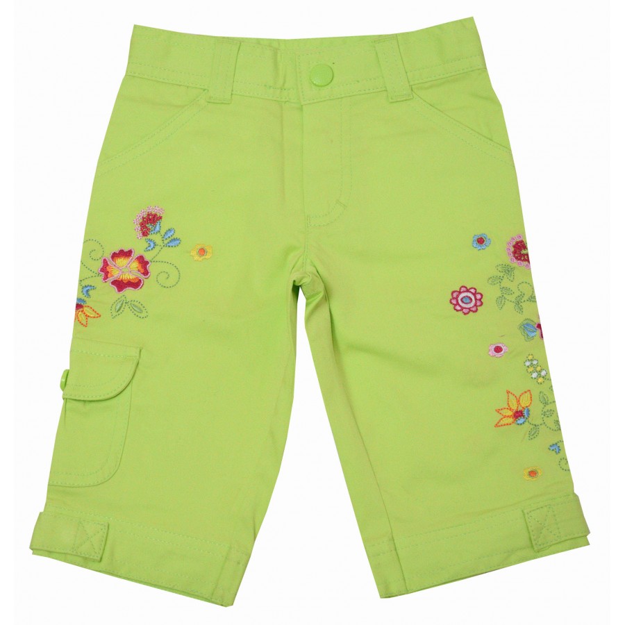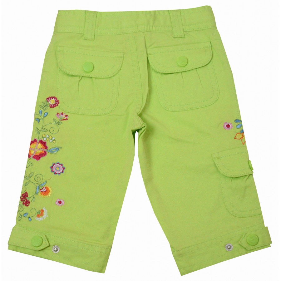 Детски пролетен панталон за момиче с дължина 7/8 в зелено с красива бродерия на цветя.
