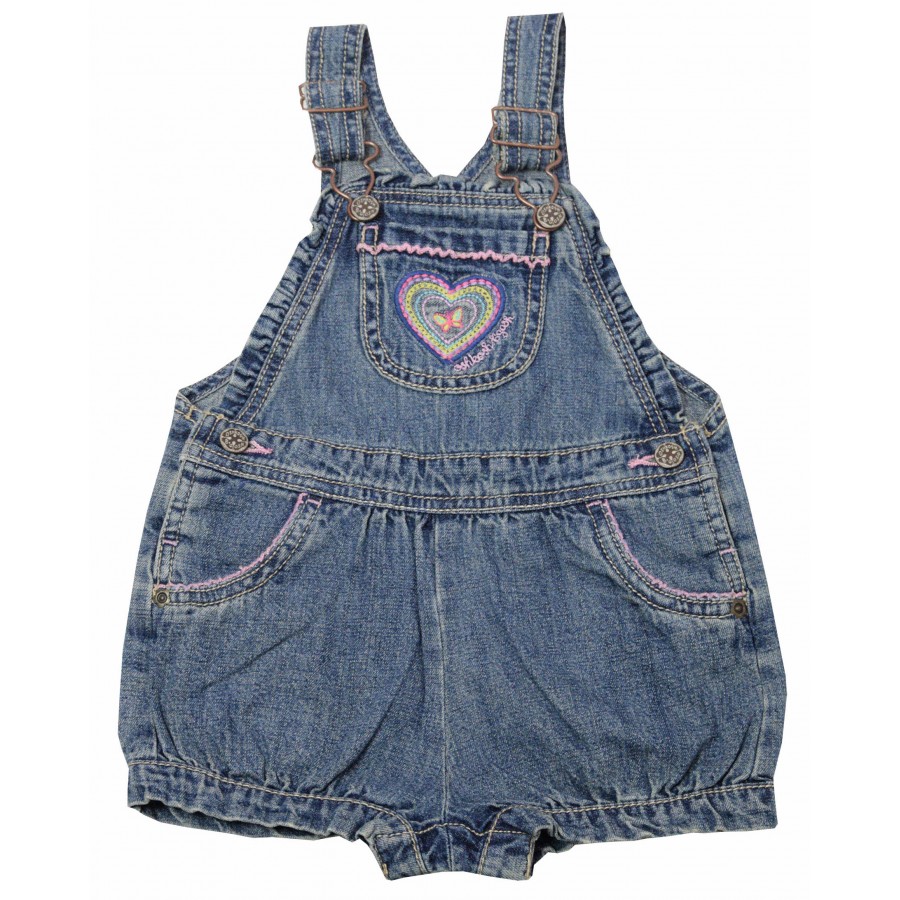 Бебешки дънков гащеризон за момиче с красива бродерия на сърце.