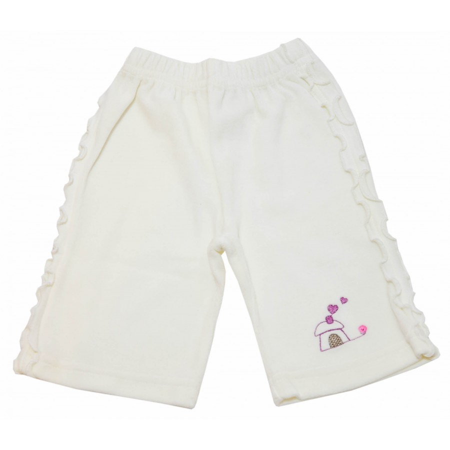 Красив бебешки комплект за момиче в цвят екрю с красива апликация. Комплекта е изработен от висококачествена материя. Блузата е със свободна кройка, дълги ръкави, закопчаване на рамото с тик-так копчета и къдрици в долната част, врата и ръкавите. Панталоните са с широка кройка от мека и фина плюшена материя, осигуряваща комфорт и топлина, със странични къдрици и бродерия. Лесен за поддръжка, комплекта може да се пере в пералня без риск от загуба на форма или цвят.