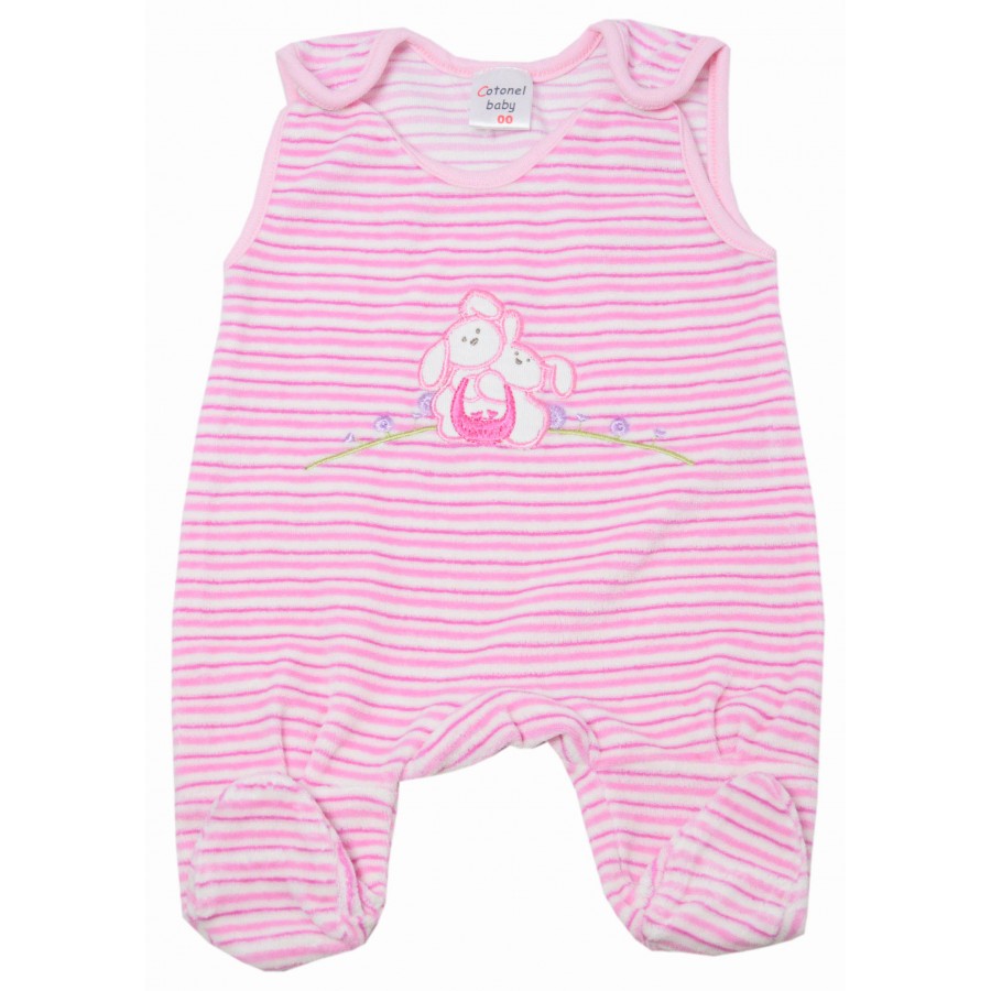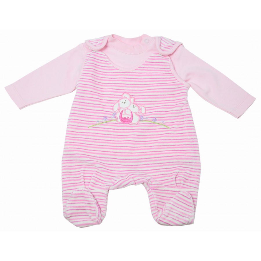 Бебешки комплект за момиче от две части с изчистена блуза в розово и плюшен райе гащеризон.