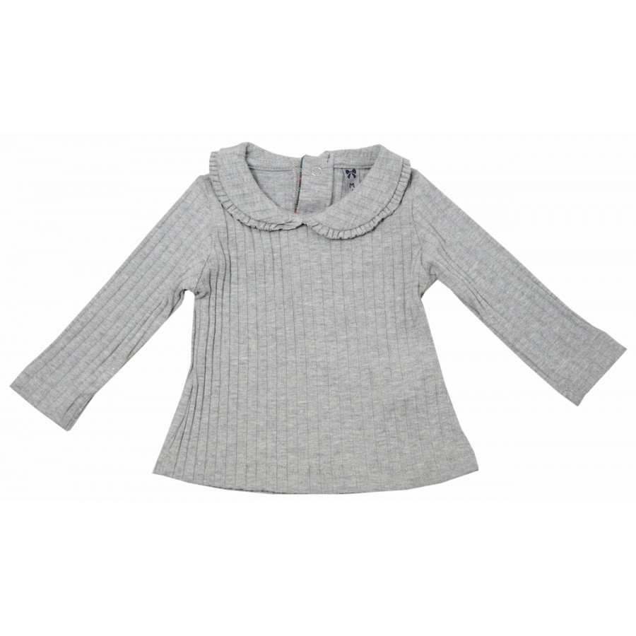 Красив и практичен бебешки комплект за момиче от две части с блуза и панталон. Модела е изработен от висококачествена материя. Блузата е рипсена в със сив цвят с класическа кройка, яка, дълги ръкави и копчета на гърба за лесно обличане и събличане. Панталоните са в тъмносиньо и сиво каре, със свободна кройка, ластична талия и панделка. Комплекта осигурява удобство и свобода на движението през целия ден.