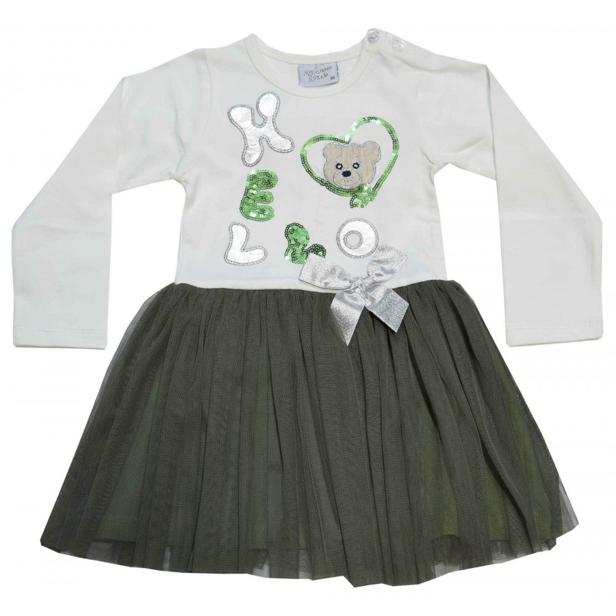Рокля в екрю с мече и зелен тюл Breeze. Състав: 95% памук, 5% еластан.