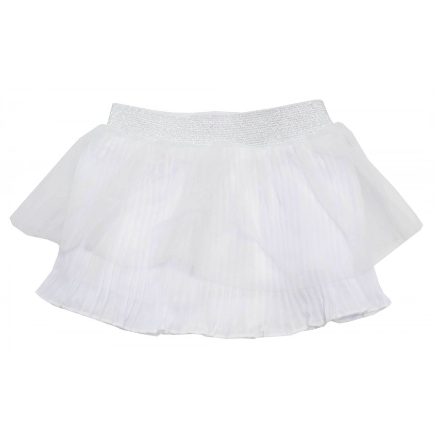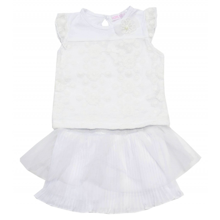 Комплект от две части: потник с дантела в бяло и пола солей с тюл в бяло. Състав: потник: 100% полиестер; пола: 100% полиестер.