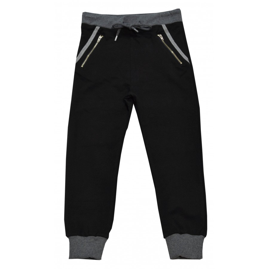 Детско спортно долнище за момче, изработено от висококачествена памучна материя. Долнището е в черно с ластик на талията и глезените. Модела е удобен и подходящ за ежедневието на Вашето момче.